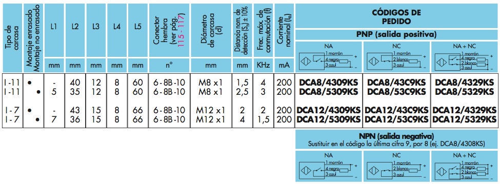 Detector Inductivo Cilíndrico en metálico de BDC, salida con conector M12x1. 2 HILOS. Norma Cenelec.