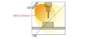 Proporciona iluminación gran angular de alta luminosidad. Se logra el brillo requerido por los estándares ISO16089;5.8.eLF1D LF2D Iluminacion LED IDEC brillo