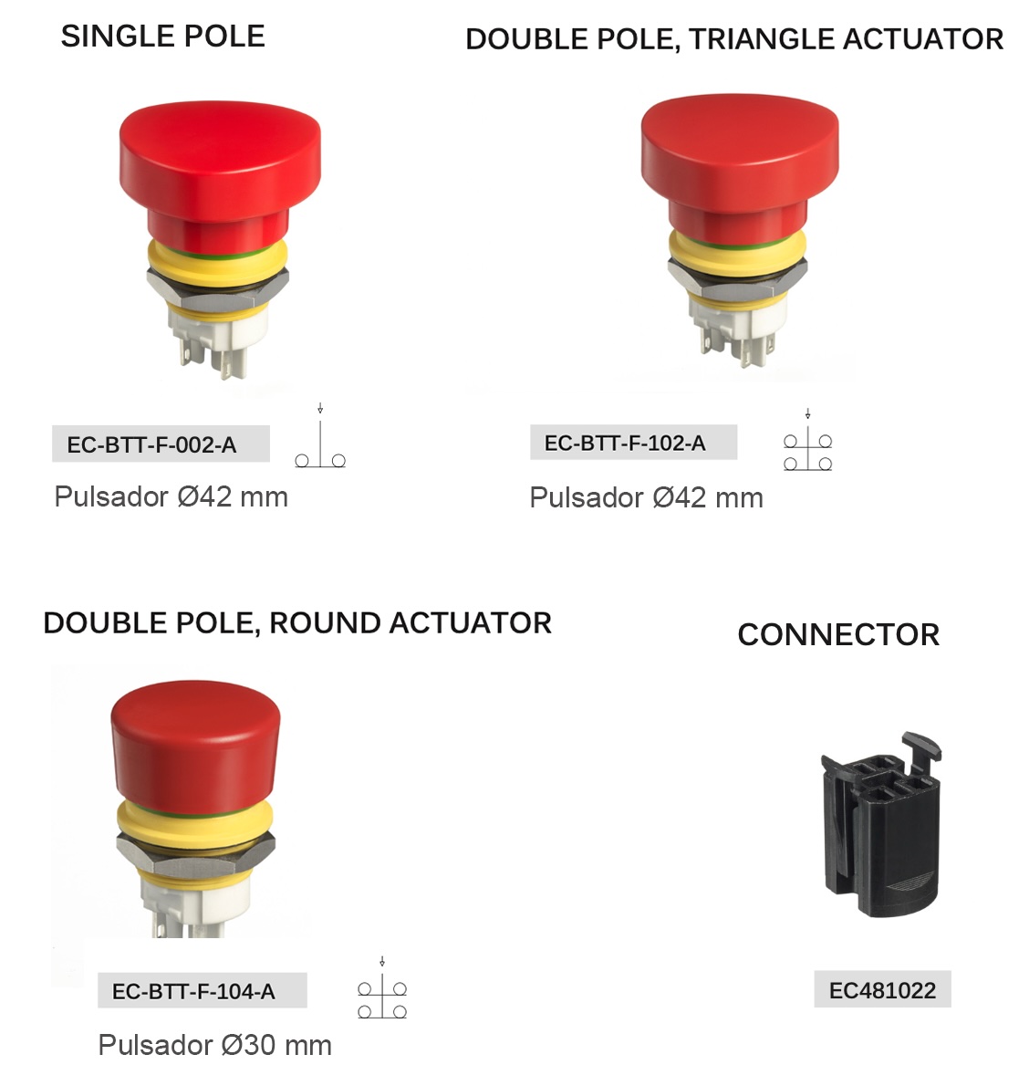 Versiones de 1 o 2 polos con contactos normalmente cerrados (NC)